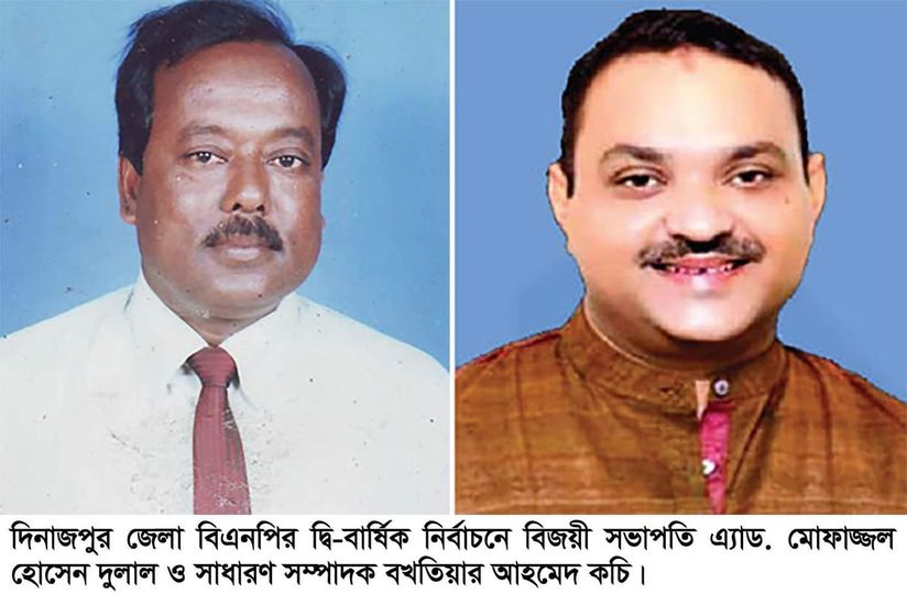 দিনাজপুরঃ- দীর্ঘ এক যুগ পর নেতা কর্মিদের উপস্থিতিতে উৎসব মুখর পরিবেশে সম্পন্ন হয়েছে দিনাজপুর জেলা বিএনপি নির্বাচন। নির্বাচনে ভোটারদের শান্তিপূর্ণ ভোটদানের মধ্য দিয়ে সভাপতি পদে এ্যাডভোকেট মোফাজ্জল হোসেন দুলাল ও সাধারণ সম্পাদক পদে বখতিয়ার আহম্মেদ কচি নির্বাচিত হয়েছেন।
