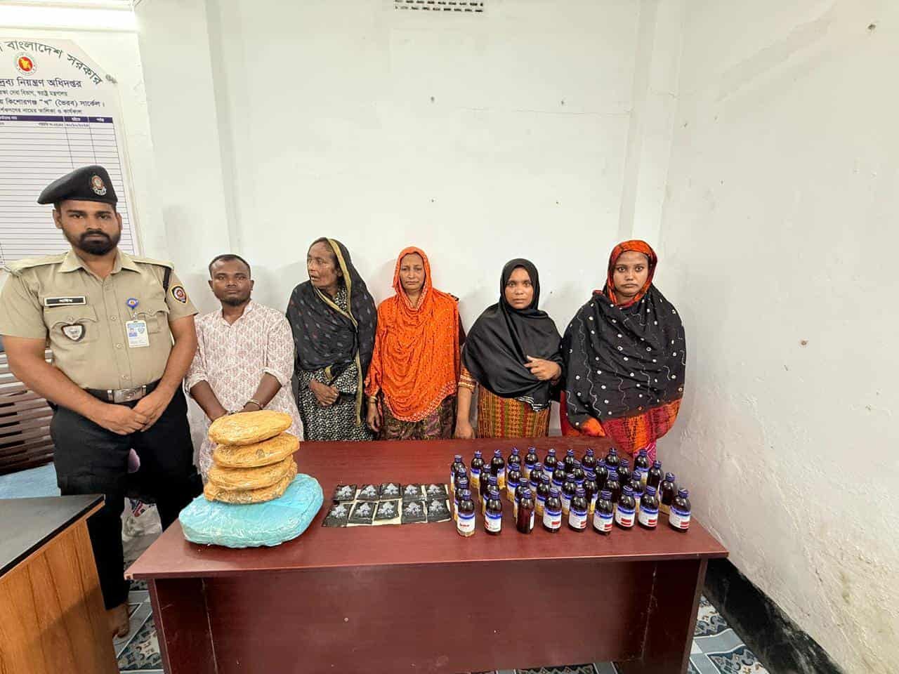মাদকদ্রব্য নিয়ন্ত্রণ অধিদপ্তর ভৈরব কার্যালয়ের পরিদর্শক চন্দন গোপাল সুর এ বিষয়ে বলেন, গোপন সংবাদের ভিত্তিতে আজ সকাল থেকে দুপুর পর্যন্ত সৈয়দ নজরুল ইসলাম সেতু এলাকাসহ বিভিন্ন এলাকায় মাদক বিরোধী অভিযান চালিয়ে ১৯৯০ পিস ইয়াবা ৩৭ বোতল স্কার্ফ সিরাপ ও ২ কেজি গাঁজা উদ্ধারপূর্বক উল্লিখিত ৫ মাদক কারবারিকে আটক করা হয়েছে। অভিযানে পঞ্চবটী বউ বাজার এলাকার মিলন মিয়ার স্ত্রী রেখা বেগমের হেফাজতে রাখা ১৯৯০ পিস ইয়াবা, পঞ্চবটী এলাকার রমজান মিয়ার স্ত্রী স্বপ্নার কাছ থেকে ৩৭ বোতল স্কার্ফ সিরাপ, ব্রাহ্মণবাড়িয়ার আখাউড়া থানাধীন ধর্মনগর গ্রামের মৃত ধন মিয়ার স্ত্রী সামছুন্নাহার, বিজয়নগর থানাধীন রইশপুর গ্রামের খোকন মিয়ার স্ত্রী নেহারা ও হবিগঞ্জ জেলার বাহুবল থানাধীন উলুয়া গ্রামের মৃত আব্দুল বারেক মিয়ার ছেলে নুরুল ইসলামকে ২ কেজি গাঁজাসহ আটক করা হয়েছে। এদেরর মধ্যে রেখা বেগমের নামে ভৈরব থানায় মাদকের একাধিক মামলা রয়েছে। আজকের অভিযানে আটককৃতদের বিরুদ্ধে মাদকদ্রব্য নিয়ন্ত্রণ অধিদপ্তর ভৈরব কার্যালয়ের কর্মকর্তারা বাদী হয়ে ভৈরব থানায় মাদকদ্রব্য নিয়ন্ত্রণ আইনে পৃথক পৃথক মামলা দায়ের করা হয়েছে।
