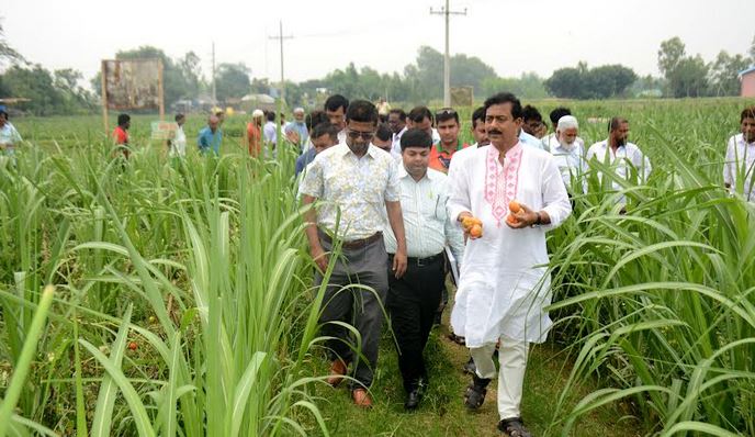 এর আগে আখ ও আখের সাথে ২য় সাথী ফসল প্লটসমুহ মুগডাল ও গ্রীষ্মকালীন টমেটো চাষ পরিদর্শন করেন মনোরঞ্জন শীল গোপাল এমপিসহ বিএসআরআই এর বিজ্ঞানীবৃন্দ।