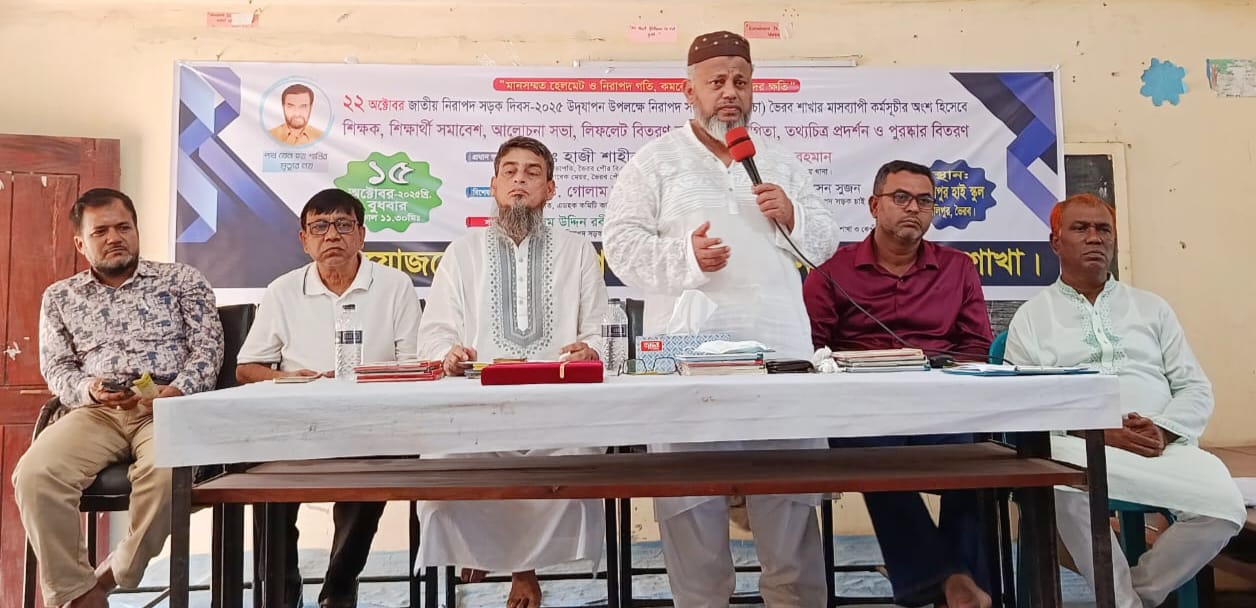 ইমন মাহমুদ লিটন, ভৈরব (কিশোরগঞ্জ) প্রতিনিধি: “মানসম্মত হেলমেট ও নিরাপদ গতি, কমবে জীবন ও সম্পদের ক্ষতি”— এই প্রতিপাদ্যকে সামনে রেখে জাতীয় নিরাপদ সড়ক দিবস ২০২৫ উদযাপন উপলক্ষে নিরাপদ সড়ক চাই (নিসচা) ভৈরব শাখার আয়োজনে মাসব্যাপী কর্মসূচির অংশ হিসেবে ১৫ অক্টোবর বুধবার সকালে ভৈরব কালীপুর হাইস্কুল মিলনায়তনে শিক্ষক-শিক্ষার্থী সমাবেশ, আলোচনা সভা, ডকুমেন্টারি প্রদর্শনী, কুইজ প্রতিযোগিতা ও পুরস্কার বিতরণ অনুষ্ঠান অনুষ্ঠিত হয়।