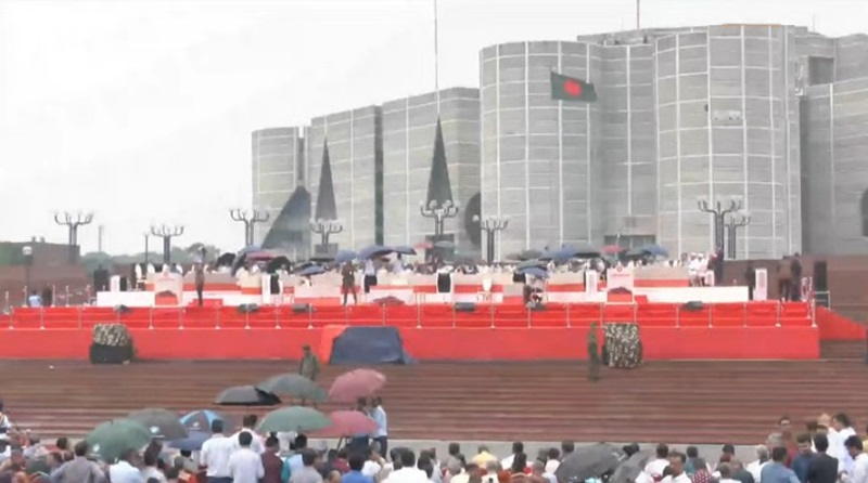 জাতীয় সংসদ ভবনের দক্ষিণ প্লাজায় অনুষ্ঠিত হচ্ছে জুলাই সনদ স্বাক্ষর অনুষ্ঠান।