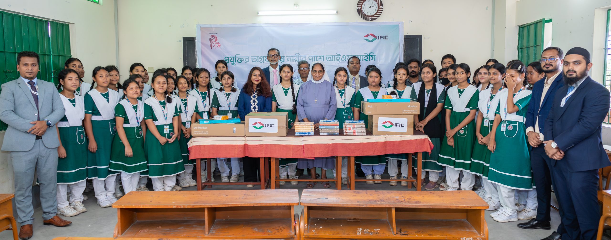 "প্রযুক্তির অগ্রযাত্রায় নারীর পাশে আইএফআইসি" উদ্যোগের আওতায় আইএফআইসি ব্যাংক দেশের বিভিন্ন শিক্ষা প্রতিষ্ঠানে কম্পিউটার বিতরণের কার্যক্রম পরিচালনা করছে। সেই ধারাবাহিকতায় গত বুধবার, ১৫ অক্টোবর ২০২৫ তারিখে ময়মনসিংহের হলি ফ্যামিলি স্কুলে শিক্ষার্থীদের মাঝে কম্পিউটার ও বই বিতরণ করা হয়।
