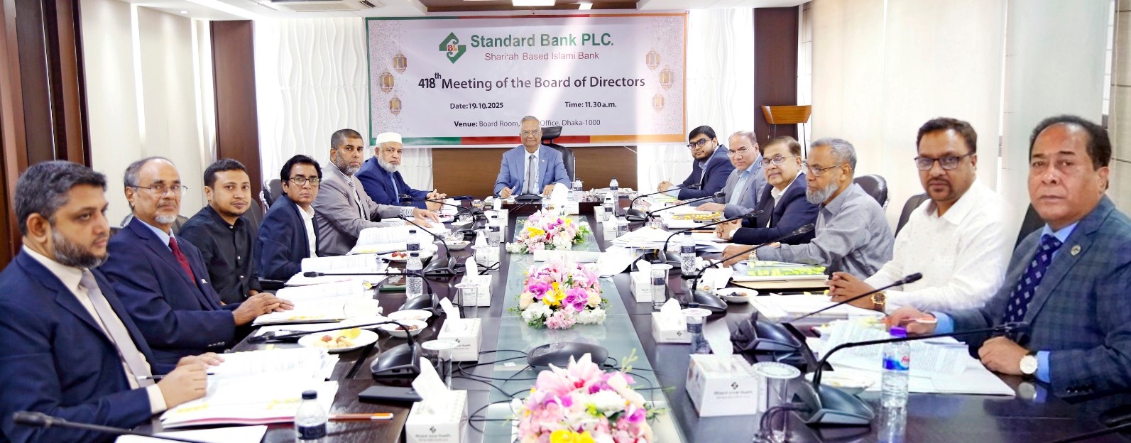 শরিআহ্ ভিত্তিক স্ট্যান্ডার্ড ব্যাংক পিএলসি. এর পরিচালনা পর্ষদের ৪১৮তম সভা, ১৯ অক্টোবর ২০২৫ তারিখে ঢাকায় ব্যাংকের প্রধান কার্যালয়ের বোর্ডরুমে অনুষ্ঠিত হয়। উক্ত সভায় সভাপতিত্ব করেন ব্যাংকের পরিচালনা পর্ষদের সম্মানিত চেয়ারম্যান মোহাম্মদ আবদুল আজিজ। সভায় অংশগ্রহণ করেন ব্যাংকের সম্মানিত ভাইস চেয়ারম্যান এ কে এম আবদুল আলীম, সম্মানিত পরিচালক অশোক কুমার সাহা, এস. এ. এম. হোসাইন, আলহাজ্ব মোহাম্মদ শামসুল আলম, মোঃ জাহেদুল হক, ফেরদৌস আলী খান, অসিত কুমার সাহা, জাহিদুল আলম এবং স্বতন্ত্র পরিচালক গোলাম হাফিজ আহমেদ। সভায় আরো অংশগ্রহণ করেন ব্যাংকের ব্যবস্থাপনা পরিচালক মোঃ হাবিবুর রহমান, উপব্যবস্থাপনা পরিচালক মোঃ সিদ্দিকুর রহমান এবং কোম্পানি সেক্রেটারি মোঃ মিজানুর রহমান, এফসিএস।