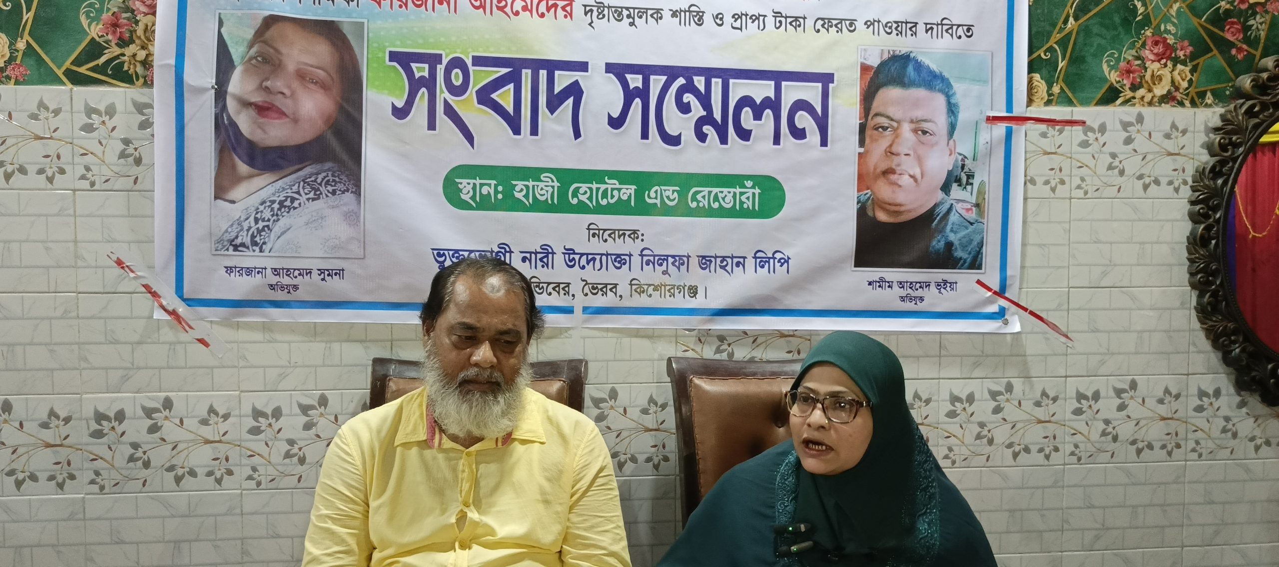 বৃহস্পতিবার দুপুরে শহরের কমলপুর হাজী হোটেল এণ্ড রেস্তোরাঁয় সংবাদ সম্মেলন করে শিক্ষিকা ফারজানা আহমেদ সুমনার প্রতারণা বিষয়টি জনসম্মুখে প্রকাশ করেন ভুক্তভোগী নিলুফা জাহান লিপি ও তার স্বামী মাসুম সরকার। তারা বলেন, ওই শিক্ষিকা একজন ভদ্রবেশী প্রতারক। ভৈরবের বহু নারী পুরুষ তার প্রতারণার শিকার হয়ে লাখ লাখ টাকার ক্ষতিগ্রস্ত হয়েছেন। মিষ্টভাষী শিক্ষিকা একই ব্যবসায় পার্টনারের কথা বলে এবং সুদের বিনিময়ে কয়েকটি টাকা হাতিয়ে নিয়ে মানুষকে সর্বশান্ত করেছে।