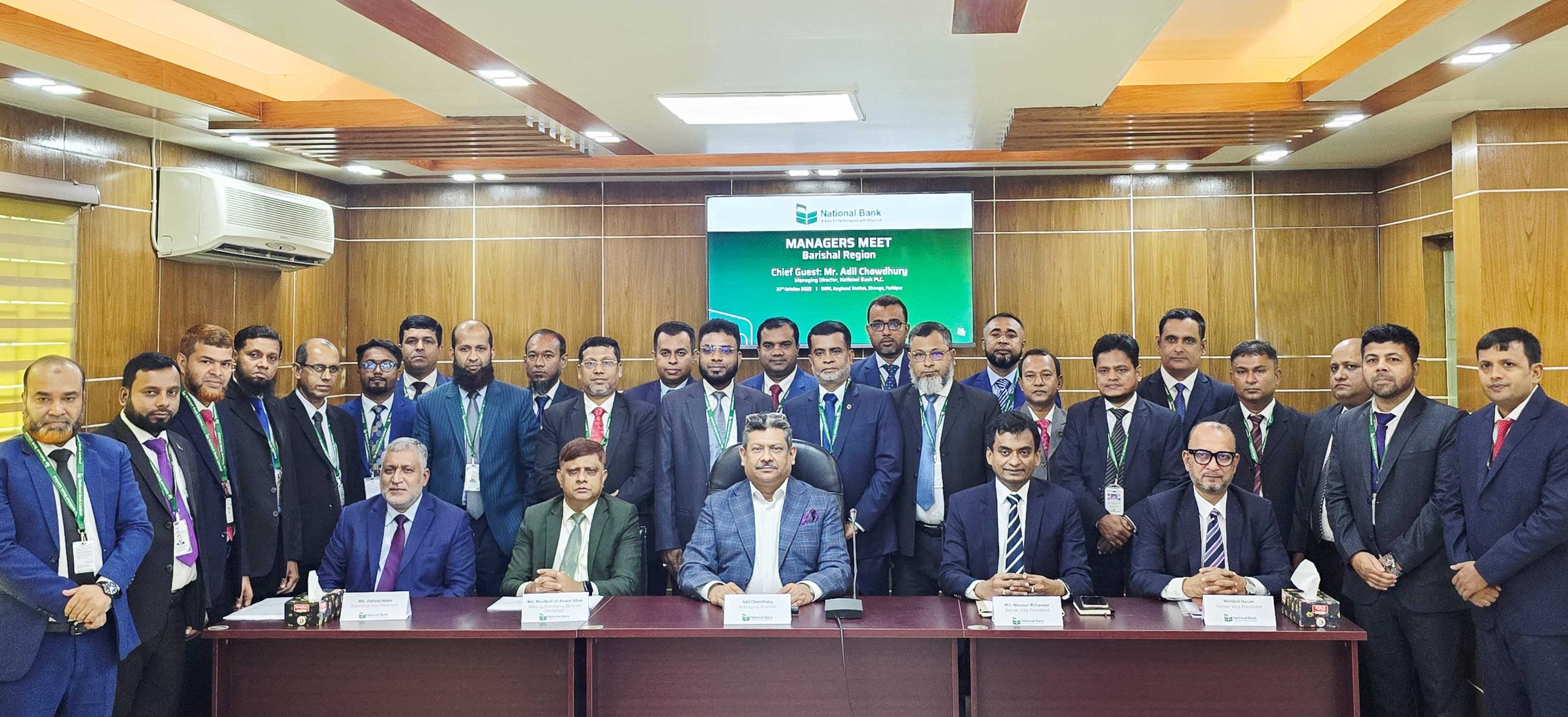 ন্যাশনাল ব্যাংক পিএলসি গত ২৭ অক্টোবর ২০২৫ তারিখে বরিশাল অঞ্চলের ২৩টি শাখার ব্যবস্থাপকবৃন্দের সঙ্গে “ম্যানেজার্স মিট” আয়োজন করে। দিনব্যাপী এই সভায় অংশগ্রহণকারীরা শাখাগুলোর পারফরম্যান্স পর্যালোচনা, কার্যকরী অভিজ্ঞতা বিনিময় এবং টেকসই প্রবৃদ্ধি ও সেবার উৎকর্ষতার জন্য কৌশল নির্ধারণ করেন।