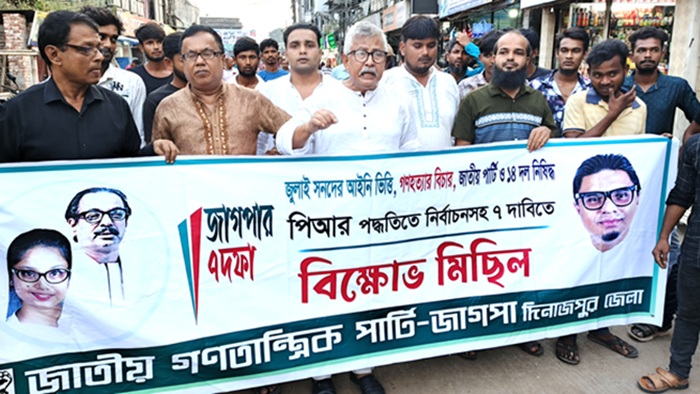 বিক্ষোভ মিছিলে উপস্থিত ছিলেন জাগপার কেন্দ্রীয় কমিটির সহ-সভাপতি মাহাবুব আলম ননি। কেন্দ্রীয় সাধারন সম্পাদক অধ্যাপক ইকবাল প্রধান। কেন্দ্রের সাংগঠনিক সম্পাদক ও দিনাজপুর জেলার জাগপার সাধারণ সম্পাদক সৈয়দ ইমরুল কায়েস রুপম, সহ-সভাপতি গোলাম মোস্তফা বাপ্পী প্রমুখ।