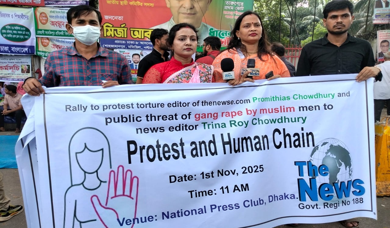বাংলাদেশ সরকারের নিয়ম নীতি মেনে সুনামের সাথে ১৪ বছর ধরে চলমান দ্যা নিউজ ডটকম (thenewse.com) এর সম্পাদক ও প্রকাশক প্রমিথিয়াস চৌধুরীকে ইসকন এর ট্যাগ লাগিয়ে খোলা বাজারে টর্চার, জিম্মি করে স্ট্যাম্পে স্বাক্ষর এবং ব্যাংকের চেকের পাতা নেওয়া, বার্তা সম্পাদক তৃণ্য রায় চৌধুরীকে মুসলিম পুরুষদের দিয়ে গ্যাং রেপের প্রকাশ্য হুমকির প্রতিবাদ সমাবেশ ও মানব বন্ধন।