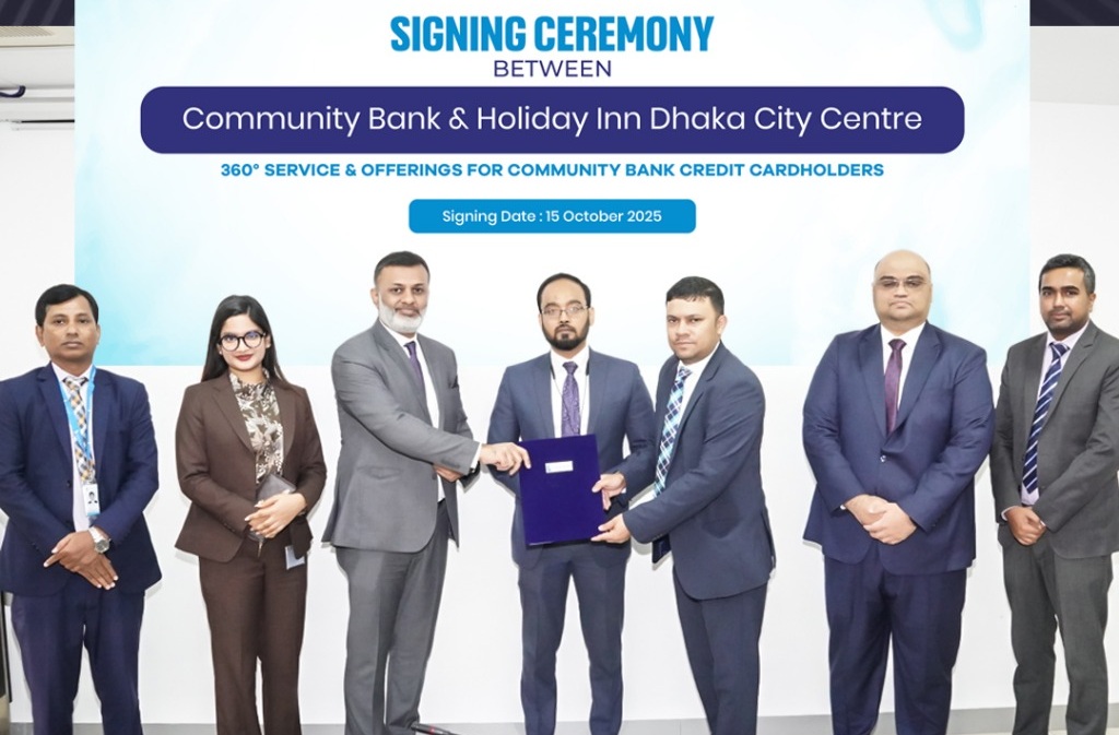 ঢাকা, ০৫ নভেম্বর ২০২৫: কমিউনিটি ব্যাংক বাংলাদেশ পিএলসি. এবং হলিডে ইন ঢাকা সিটি সেন্টারের মধ্যে একটি কৌশলগত অংশীদারিত্ব চুক্তি স্বাক্ষরিত হয়েছে। সম্প্রতি রাজধানীতে কমিউনিটি ব্যাংকের প্রধান কার্যালয়ে আনুষ্ঠানিকভাবে এ চুক্তি স্বাক্ষর অনুষ্ঠিত হয়।