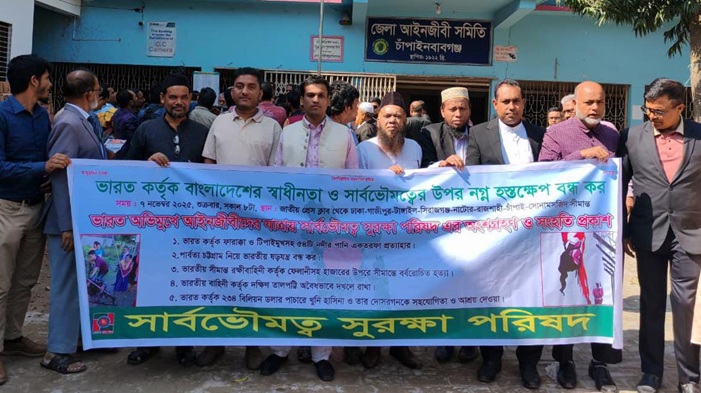 আজ ৮ নভেম্বর শনিবার চাঁপাইনবয়াবগঞ্জ শহরের নবাবগঞ্জ সরকারি কলেজের সামনে "ভয়েস অব ল’ইয়ার্স বাংলাদেশ" এর লংমার্চ থেকে পার্বত্য চট্টগ্রাম নিয়ে ভারতীয় ষড়যন্ত্রের কঠিন জবাব দেওয়ার হুশিয়ারী দিয়েছে সার্বভৌমত্ব সুরক্ষা পরিষদ এর প্রধান সমন্বয়ক মোঃ মোস্তফা আল ইহযায।