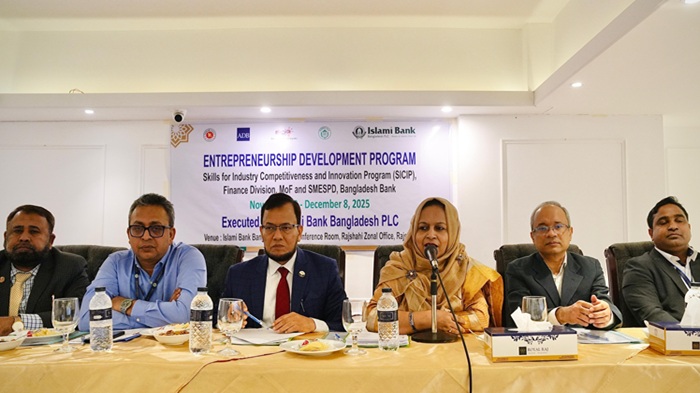 ইসলামী ব্যাংক বাংলাদেশ পিএলসি রাজশাহী জোন দেশের সম্ভাবনাময় এসএমই উদ্যোক্তাদের জন্য “উদ্যোক্তা উন্নয়ন কর্মসূচি’ ১০ নভেম্বর ২০২৫ সোমবার শুরু করেছে। এশিয়ান ডেভেলপমেন্ট ব্যাংকের অর্থায়নে অর্থ মন্ত্রণালয়ের অর্থবিভাগের স্কিলস ফর ইন্ডাস্ট্রি কম্পিটিটিভনেস অ্যান্ড ইনোভেশন প্রোগ্রাম এর আওতায় বাংলাদেশ ব্যাংকের এসএমই অ্যান্ড স্পেশাল প্রোগ্রামস ডিপার্টমেন্টের তত্ত্বাবধানে মাসব্যাপী এ প্রশিক্ষণ কর্মসুচী শুরু হয়।