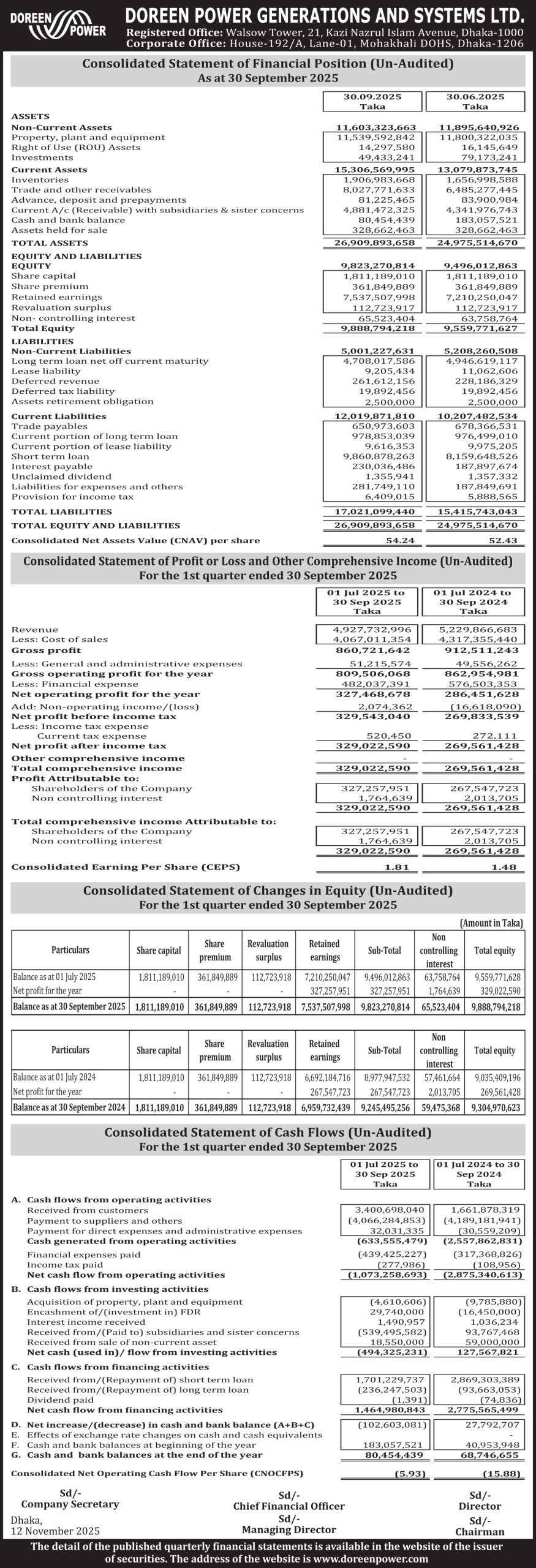 Financial Statements Q1 of Doreen Power Generations and Systems Ltd.