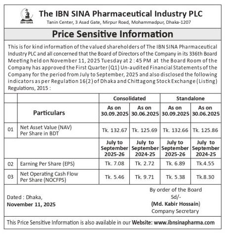 Price Sensitive Information of The IBN SINA Phamaceutical Industry PLC
