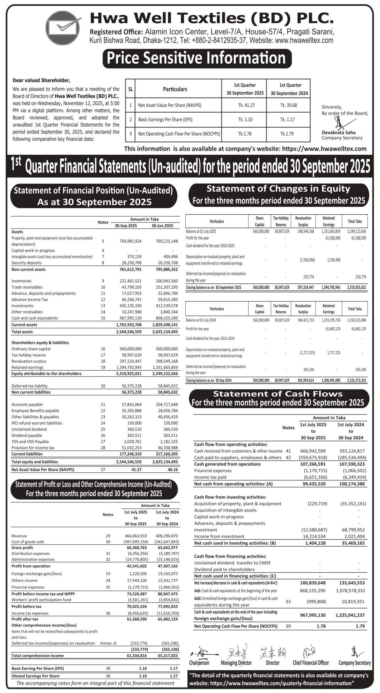 Price Sensitive Information of Hwa Well Textiles (BD) PLC.