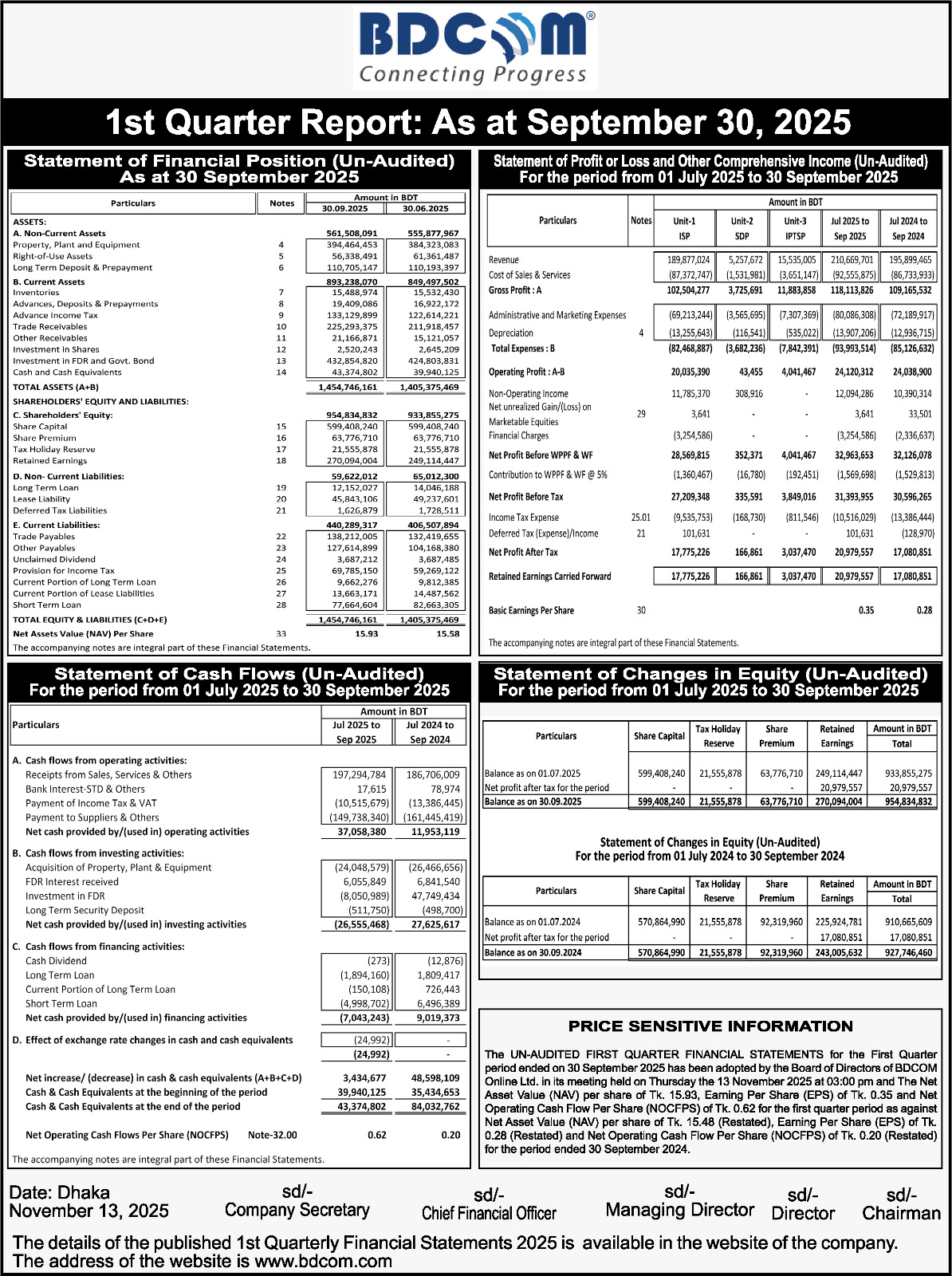 Financial Statements (Q1) of BDCOM Online Ltd.