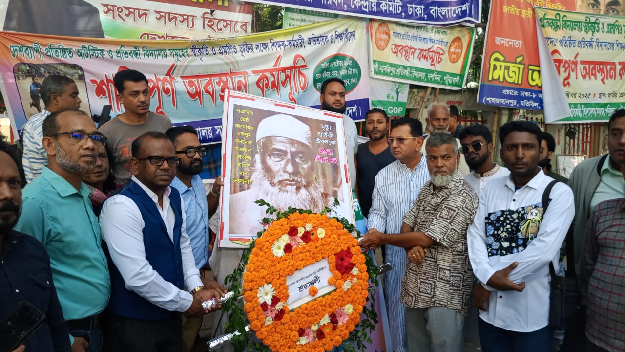 মানববন্ধন শেষে মওলানা ভাসানীর প্রতিকৃতিতে শ্রদ্ধা নিবেদন করেন নেতৃবৃন্দ।