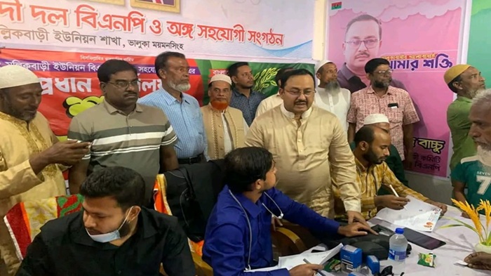 মকবুল হোসেন, ময়মনসিংহ জেলা প্রতিনিধি: ময়মনসিংহ-১১ ভালুকা আসনে বিএনপি মনোনীত ধানের শীষ প্রতীকের প্রার্থী, বিএনপি জাতীয় নির্বাহী কমিটির সাবেক সদস্য ও উপজেলা বিএনপির সাবেক সভাপতি জননেতা ফখরউদ্দিন আহমেদ বাচ্চু এরউদ্যোগেউপজেলাব্যাপীর জন্য বিনামূল্যে চিকিৎসা সেবা প্রদান ও ঔষধ বিতরণ কর্মসূচির ৯ম দিনে আজ ১৮ নভেম্বর মঙ্গলবার উপজেলার মল্লিকবাড়ি ইউনিয়ন ও বিরুনিয়া ইউনিয়নে বিশেষজ্ঞ ডাক্তারগণ রোগী দেখেন এবং পরে রোগীদের মাঝে বিনামূল্যে ঔষধ বিতরণ করা হয়।