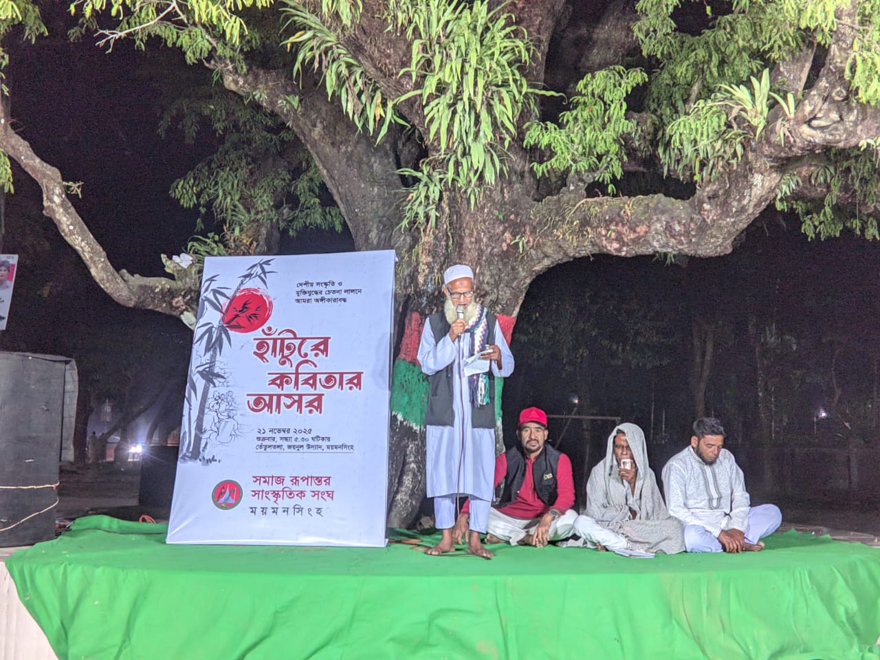 মকবুল হোসেন, ময়মনসিংহ জেলা প্রতিনিধি: বাঙালীর সমৃদ্ধ সংস্কৃতির বিলুপ্তপ্রায় হাঁটুরে কবিতাকে প্রজন্মের সামনে তুলে ধরার মানসে আজ ২১ নভেম্বর শুক্রবার ময়মনসিংহে সমাজ রূপান্তর সাংস্কৃতিক সংঘের উদ্যোগে হাঁটুরে কবিতার আসরের আয়োজন করা হয়। নগরীর জয়নুল উদ্যানের তেঁতুলতলায় আজ সন্ধ্যা ৫:৩০ ঘটিকায় এই আসর শুরু হয়৷