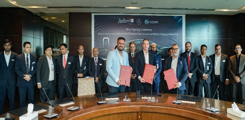 র্যাডিসন ব্লু চট্টগ্রাম বে ভিউ হোটেলে নতুন বৈদ্যুতিক গাড়ি চার্জিং সুবিধা চালু করতে মারসেডিজ- বেন্জ বাংলাদেশ এবং ক্র্যাক প্লাটুন চার্জিং সল্যুশন লিমিটেড। একটি ত্রিপাক্ষিক চুক্তির মাধ্যকে অবকাঠামোটি নির্মাণ করা হয়েছে।
