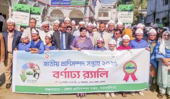 মকবুল হোসেন, ময়মনসিংহ জেলা প্রতিনিধি: "দেশীয় জাত, আধুনিক প্রযুক্তি: প্রাণিসম্পদে হবে উন্নতি" প্রতিপাদ্য নিয়ে ময়মনসিংহে জাতীয় প্রাণিসম্পদ সপ্তাহ 2025 এর উদ্বোধন অনুষ্ঠিত হয়।