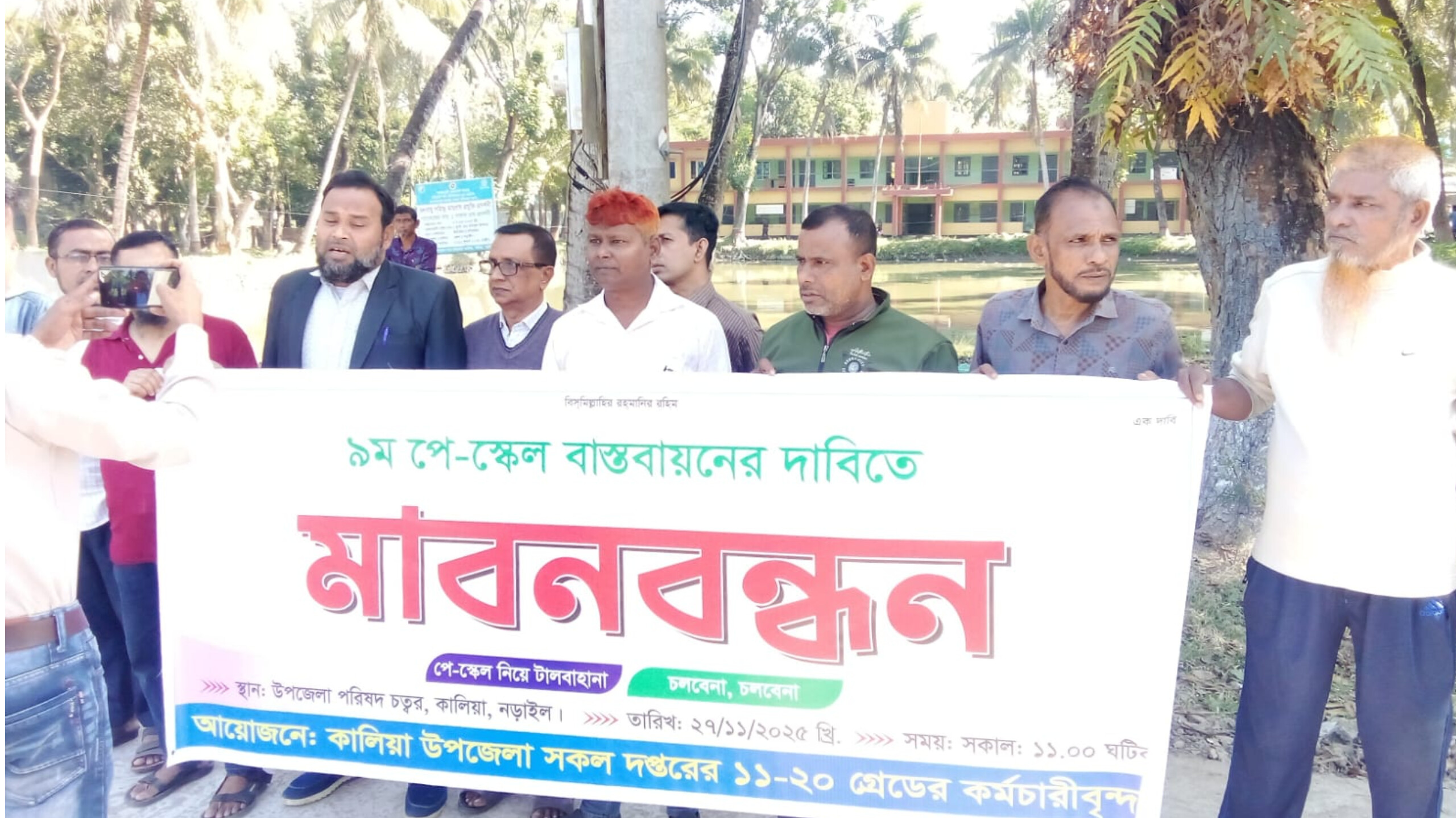 মামুন মোল্যা, নড়াইল জেলা প্রতিনিধি: ৯ম পে স্কেল বাস্তবায়নের দাবিতে কালিয়া উপজেলা সকল দপ্তরের ১১-২০ গ্রেডের সকল কর্মচারীদের আয়োজনে মানববন্ধন অনুষ্ঠিত হয়।