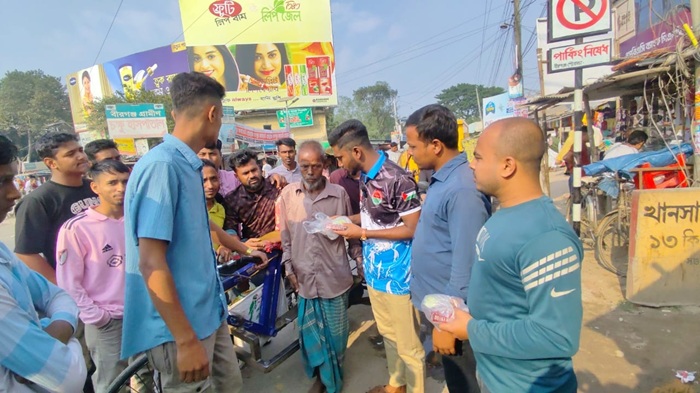 রবিবার (৩০ নভেম্বর) দুপুরে এই মানবিক কার্যক্রমে পথচারী, শ্রমজীবী, রিকশাচালকসহ সুবিধাবঞ্চিত মানুষের হাতে খাবার তুলে দেওয়া হয়।