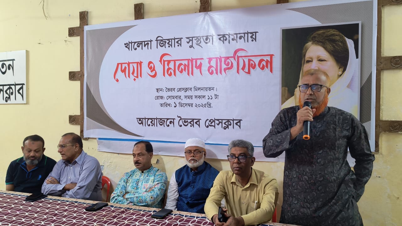 ইমন মাহমুদ লিটন, ভৈরব (কিশোরগঞ্জ) প্রতিনিধি: ভৈরবে সাবেক প্রধানমন্ত্রী বেগম খালেদা জিয়ার রোগ মুক্তি কামনায় দোয়া ও আলোচনা সভা অনুষ্ঠিত হয়েছে ।