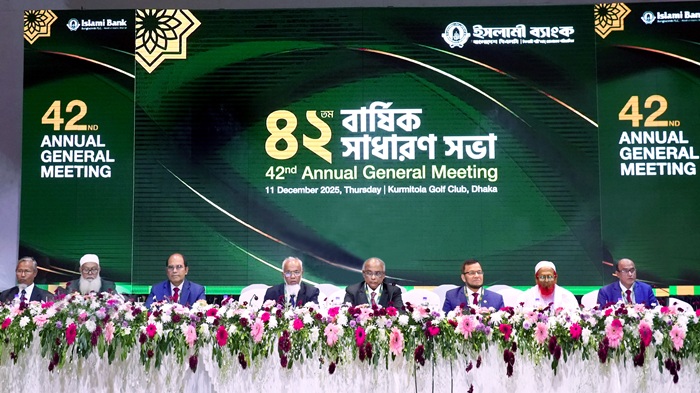 ইসলামী ব্যাংক বাংলাদেশ পিএলসি-এর ৪২তম বার্ষিক সাধারণ সভা ১১ ডিসেম্বর ২০২৫, বৃহস্পতিবার রাজধানীর কুর্মিটোলা গলফ ক্লাবে অনুষ্ঠিত হয়। ব্যাংকের চেয়ারম্যান প্রফেসর ড. এম জুবায়দুর রহমান এতে সভাপতিত্ব করেন। ব্যাংকের এক্সিকিউটিভ কমিটির চেয়ারম্যান মোহাম্মদ খুরশীদ ওয়াহাব, অডিট কমিটির চেয়ারম্যান মোঃ আবদুস সালাম, এফসিএ, এফসিএস, রিস্ক ম্যানেজমেন্ট কমিটির চেয়ারম্যান প্রফেসর ড. এম মাসুদ রহমান, স্বতন্ত্র পরিচালক মোঃ আবদুল জলিল, ম্যানেজিং ডাইরেক্টর মোঃ ওমর ফারুক খাঁন, শরী'আহ সুপারভাইজরি কাউন্সিলের চেয়ারম্যান মুফতি ছাঈদ আহমদ এবং কোম্পানি সেক্রেটারি মোঃ হাবিবুর রহমানসহ উল্লেখযোগ্য সংখ্যক শেয়ারহোল্ডার এ সভায় অংশগ্রহণ করেন। সভায় ২০২৪ সালের আর্থিক বিবরণী অনুমোদন করা হয়।