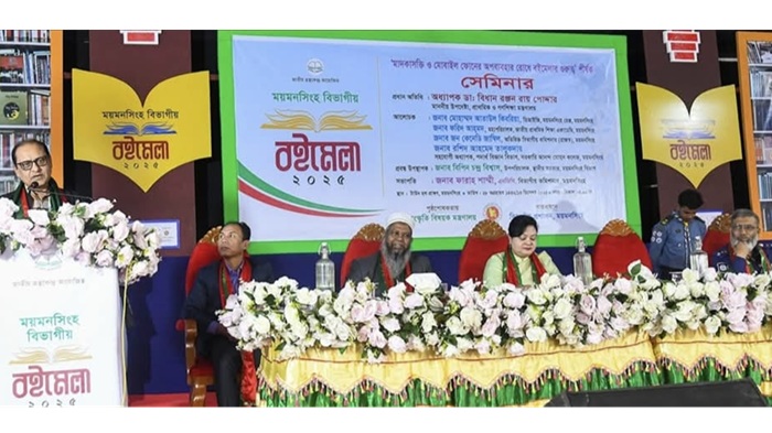 ময়মনসিংহ বিভাগীয় বইমেলা ২০২৫ উপলক্ষ্যে সংস্কৃতি বিষয়ক মন্ত্রণালয়ের পৃষ্ঠপোষকতায় বিভাগীয় প্রশাসনের ব্যবস্থাপনায় ও জাতীয় গ্রন্থকেন্দ্রের আয়োজনে আজ ১৩ ডিসেম্বর শনিবার বিকালে ময়মনসিংহ টাউন হলে অনুষ্ঠিত ‘মাদকাশক্তি ও মোবাইল ফোনের অপব্যবহার রোধে বইমেলার গুরুত্ব’ শীর্ষক সেমিনারে তিনি এসব কথা বলেন।