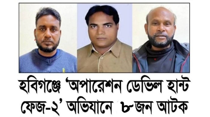 হবিগঞ্জ সদর থানার ভারপ্রাপ্ত কর্মকর্তা (ওসি) দেলোয়ার হোসেন বলেন, পুলিশ সুপারের নির্দেশে অভিযান নির্বাচনের আগ পর্যন্ত চলবে। পুলিশ সুপার মোছা. ইয়াছমিন খাতুন বলেন, ‘যে কোনো ধরনের নাশকতা রুখতে পুলিশ সতর্ক অবস্থানে রয়েছে। আসন্ন নির্বাচন নির্বিঘ্ন করতে পুলিশি অভিযান শুরু হয়েছে। অভিযানে ৮ জনকে গ্রেপ্তার করা হয় তাদের বিরুদ্ধে নিয়মিত মামলা রয়েছে।