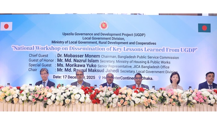 বাংলাদেশে স্থানীয় সুশাসন ব্যবস্থা শক্তিশালী করার রূপরেখা এবং উপজেলা পরিচালন ও উন্নয়ন প্রকল্পের (ইউজিডিপি) অর্জনগুলো তুলে ধরতে আজ এক কর্মশালার আয়োজন করেছে জাপান ইন্টারন্যাশনাল কো-অপারেশন এজেন্সি (জাইকা) বাংলাদেশ। অনুষ্ঠানটি সমন্বয় করেন ইউজিডিপির প্রকল্প পরিচালক ও যুগ্ম সচিব ড. আবু নাসের মোহাম্মদ আবদুল্লাহ।