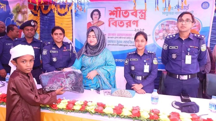 মকবুল হোসেন, ময়মনসিংহ জেলা প্রতিনিধি: ময়মনসিংহ জেলার ফুলবাড়িয়া থানাধীন রাঙ্গামাটিয়া (জয়নাল মার্কেট) বাবুলের বাজার আজ ‘১৮ডিসেম্বর বৃহস্পতিবার দুপুর ১২:০০টায় দারুল উলুম মুঈনুল ইসলাম মাদ্রাসা’ প্রাঙ্গণে আফরোজা হেলেন, সভানেত্রী, বাংলাদেশ পুলিশ নারী কল্যাণ সমিতি (পুনাক) এর তত্ত্বাবধানে ও ঝুমা নাসরিন, সভানেত্রী, পুলিশ নারী কল্যাণ সমিতি (পুনাক) ময়মনসিংহ এর সভাপতিত্বে মাদ্রাসার শিক্ষার্থীদের মাঝে শীতবস্ত্র বিতরণ করা হয়।
