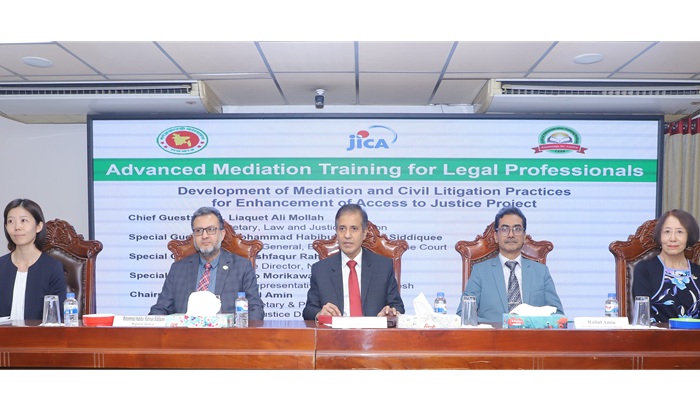 ‘ডেভেলপমেন্ট অব মেডিয়েশন অ্যান্ড সিভিল লিটিগেশন প্র্যাকটিসেস ফর এনহ্যান্সমেন্ট অব অ্যাক্সেস টু জাস্টিস প্রোজেক্ট’ -এর গুরুত্বপূর্ণ কার্যক্রম হিসেবে আইন, বিচার ও সংসদ বিষয়ক মন্ত্রণালয়ের সহযোগিতায় আইন পেশাজীবীদের জন্য দুই দিনব্যাপী ‘অ্যাডভান্সড মিডিয়েশন ট্রেইনিং’ আয়োজন করে জাপান ইন্টারন্যাশনাল কো-অপারেশন এজেন্সি (জাইকা)। ২১ ও ২২ ডিসেম্বর জুডিশিয়াল অ্যাডমিনিস্ট্রেশন ট্রেনিং ইনস্টিটিউটে (জেএটিআই) এ প্রশিক্ষণ অনুষ্ঠিত হয়। এই প্রশিক্ষণের লক্ষ্য ছিল মধ্যস্থতাকারীদের সক্ষমতা জোরদার করা। গত ১ ও ২ আগস্ট অনুষ্ঠিত প্রাথমিক প্রশিক্ষণের ওপর ভিত্তি করে এই কর্মসূচিতে অংশগ্রহণকারীদের মধ্যস্থতা সংক্রান্ত জ্ঞান ও দক্ষতা আরও উন্নত করা হয়। পাশাপাশি, বাস্তব জীবনের মামলায় এসব দক্ষতা কীভাবে কার্যকরভাবে প্রয়োগ করা যায়, সে বিষয়েও আলোচনা করা হয়।