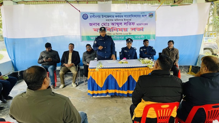 মতবিনিময় সভায় রাণীনগর থানার নবাগত ওসি মো. আব্দুল লতিফ বলেন, সাংবাদিকরা সমাজের দর্পণ। তারা তথ্যের ভান্ডার, তাই তাদের কাছ থেকে প্রাপ্ত তথ্য আইনশৃঙ্খলা পরিস্থিতি নিয়ন্ত্রণে সহায়তা করে। সঠিক তথ্য প্রদানের মাধ্যমে গুজব ও অপপ্রচার প্রতিরোধে সাংবাদিকদের ভূমিকা গুরুত্বপূর্ণ। রাণীনগর উপজেলার শান্তিপূর্ণ পরিবেশ রক্ষায় সঠিক তথ্য সরবরাহে সাংবাদিকদের কাছে সহযোগিতা চান এবং একযোগে কাজ করার প্রত্যয় ব্যক্ত করেন।