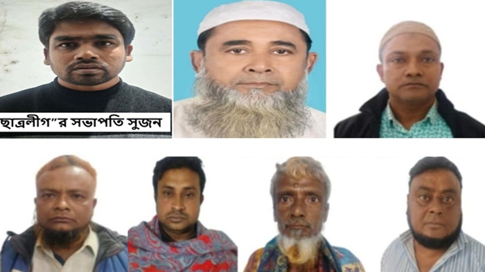 গ্রেপ্তারকৃতরা হলেন, ১। আবিদপুরের ওয়ার্ড ছাত্রলীগ সভাপতি মোঃ রবিউল হাসান প্রকাশ সুজন (৩৫), পিতা: সিদ্দিকুর রহমান, মাতা: মৃত আলেয়া বেগম, সাং:আবিদপুর, ২। উপজেলা যুবলীগ নেতা ও উপজেলা ছাত্রলীগের সাবেক সভাপতি মোহাম্মদ শরিফুল ইসলাম (৪৬), তিনি সদর এলাকার মৃত শফিকুর রহমানের ছেলে, ৩। রাজাপুর ইউনিয়ন পরিষদের সদস্য ও ওয়ার্ড আওয়ামী লীগের সভাপতি মো. হারুন মিয়া (৫৮), তিনি রাজাপুর গ্রামের মৃত আকামত আলীর ছেলে, ৪। আওয়ামী লীগ নেতা মো. মিজান হোসেন (৪৬), তিনি জগতপুর গ্রামের মৃত মুক্তল হোসেনের ছেলে, ৫। আওয়ামী লীগের সমর্থক আহামুদুল হাসান (৩৮), তিনি আজ্ঞাপুর গ্রামের মৃত ফজলুল হকের ছেলে, ৬। ওয়ার্ড যুবলীগের সাধারণ সম্পাদক মো. বিল্লাল হোসেন (৫২), তিনি রাজাপুর গ্রামের মৃত. আরব আলীর ছেলে।