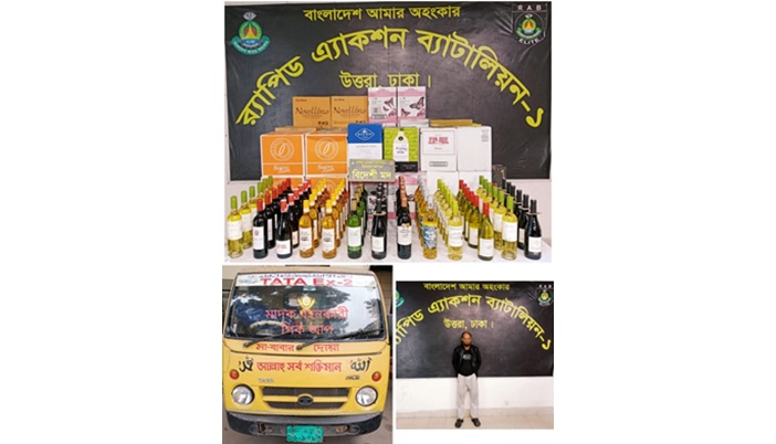মাদকবিরোধী এসকল অভিযানের ধারাবাহিকতায় অদ্য ২৭ ডিসেম্বর ২০২৫ ইং তারিখ সকাল ০৬৩০ ঘটিকায় র্যাব-১, উত্তরা, ঢাকা এর একটি আভিযানিক দল তথ্য প্রযুক্তি ও গোপন সংবাদের ভিত্তিতে জানতে পারে যে, ডিএমপি, ঢাকার গুলশান থানা এলাকায় কতিপয় মাদক ব্যবসায়ী বিপুল পরিমাণ বিদেশী মদ নিয়ে গুলশান-১ হইতে বাড্ডার দিকে যাচ্ছে। উক্ত সংবাদের ভিত্তিতে র্যাবের আভিযানিক দলটি ডিএমপি ঢাকার গুলশান থানাধীন বাসা নং-১৮, রোড নং-১১১ এর সামনে পাকা রাস্তার উপর পৌঁছাইলে কতিপয় ব্যক্তি ০১টি পিকআপ ভ্যান রেখে পালিয়ে যাওয়ার সময় র্যাবের আভিযানিক টিমের সহায়তায় মোঃ শাহজাহান (৩৭),পিতা- আঃ খালেক , মাতা- সাবিরন নেছা সাং-নয়নকান্দি , পোঃ মুন্সিগাও থানা- ধোবাউড়া জেলা- ময়মনসিংহ , এপি-বোডবাজার, গাজীপুর'কে ৬৫৯ বোতল (৪৯৪.২৫ লিটার) বিদেশী মদ ও পিকআপসহ গ্রেফতার করা হয়।