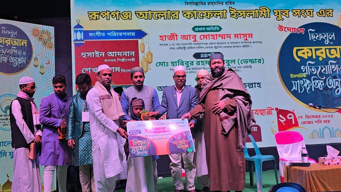 শাকিল আহম্মেদ, স্টাফ রিপোর্টার: নারায়ণগঞ্জের রূপগঞ্জে ইসলামী শিক্ষার প্রসার ও যুব সমাজকে নৈতিকতার আলোয় উদ্বুদ্ধ করার লক্ষ্যে হিফজুল কোরআন প্রতিযোগিতা ও ইসলামী সাংস্কৃতিক অনুষ্ঠানের আয়োজন করা হয়েছে।