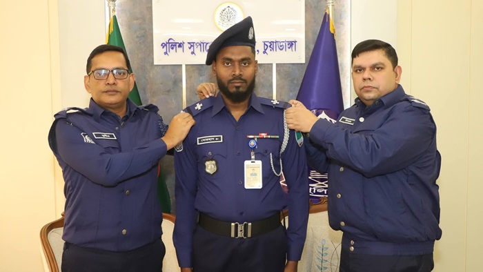 গতকাল বুধবার দুপুর সাড়ে বারোটায় চুয়াডাঙ্গার পুলিশ সুপারের কার্যালয়ের অফিসকক্ষে এ উপলক্ষে আয়োজিত অনুষ্ঠানে চুয়াডাঙ্গা জেলার পুলিশ সুপার মোহাম্মদ মনিরুল ইসলাম আনুষ্ঠানিকভাবে তাদের র্যাংক ব্যাজ পরিয়ে দেন।