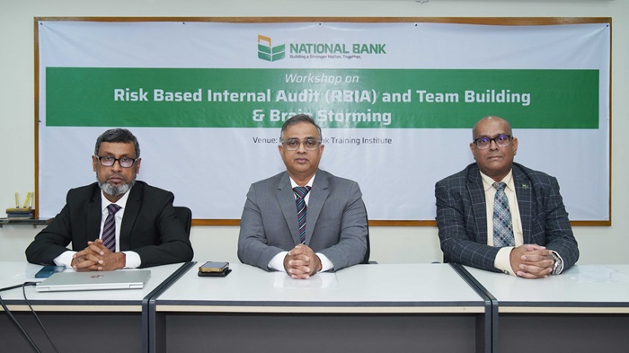 ন্যাশনাল ব্যাংক ট্রেনিং ইনস্টিটিউট ও ইন্টার্নাল কন্ট্রোল অ্যান্ড কমপ্লায়েন্স ডিভিশনের যৌথ উদ্যোগে ৪ জানুয়ারি ২০২৫, রবিবার ‘Risk Based Internal Audit (RBIA) and Team Building & Brain Storming’ শীর্ষক দিনব্যাপী প্রশিক্ষণ কর্মশালার আয়োজন করা হয়। উক্ত কর্মশালায় ন্যাশনাল ব্যাংকের প্রধান কার্যালয়ের ইন্টার্নাল কন্ট্রোল অ্যান্ড কমপ্লায়েন্স ডিভিশনের বিভাগীয় প্রধান ও কর্মকর্তাগণ অংশগ্রহণ করেন।