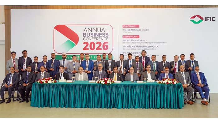 শনিবার (১০ জানুয়ারি ২০২৬) আইএফআইসি টাওয়ারের মাল্টিপারপাস হলে অনুষ্ঠিত হয়েছে 'আইএফআইসি ব্যাংক পিএলসি বার্ষিক ব্যবসায়িক সম্মেলন-২০২৬'। ব্যাংকের পরিচালনা পর্ষদের চেয়ারম্যান মোঃ মেহমুদ হোসেন অনুষ্ঠানে প্রধান অতিথি হিসেবে উপস্থিত ছিলেন। ব্যাংকের ব্যবস্থাপনা পরিচালক জনাব সৈয়দ মনসুর মোস্তফার সভাপতিত্বে অনুষ্ঠিত এই সম্মেলনে বিগত বছরের সাফল্য পর্যালোচনা এবং নতুন বছরের কৌশলগত লক্ষ্যমাত্রা নির্ধারণ করা হয়।