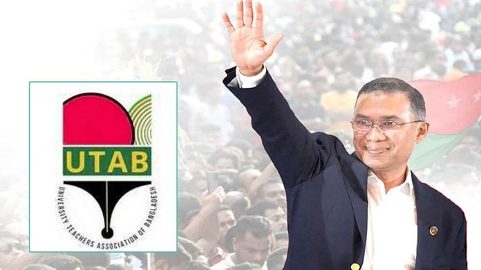 বাংলাদেশ জাতীয়তাবাদী দল (বিএনপি) এর চেয়ারম্যান হিসেবে দায়িত্ব গ্রহণ করায় জনাব তারেক রহমান-কে আন্তরিক অভিনন্দন ও প্রাণঢালা শুভেচ্ছা জানিয়েছে বিশ্ববিদ্যালয়ের শিক্ষকদের সংগঠন ইউনিভার্সিটি টিচার্স অ্যাসোসিয়েশন অব বাংলাদেশ (ইউট্যাব)। শনিবার (১০ জানুয়ারি ২০২৬) এক বিবৃতিতে ইউট্যাব এর প্রেসিডেন্ট অধ্যাপক ড. এবিএম ওবায়দুল ইসলাম ও মহাসচিব অধ্যাপক ড. মোর্শেদ হাসান খান বলেন, বিএনপির মতো বৃহৎ জনপ্রিয় রাজনৈতিক দলের পূর্ণ চেয়ারম্যান হিসেবে দায়িত্বভার গ্রহণ করেছেন জনাব তারেক রহমান। আমরা বিশ্বাস করি তাঁর সুযোগ্য নেতৃত্বে বাংলাদেশে আগামীতে গণতান্ত্রিক পরিবেশ ফিরে আসবে। শিক্ষক-শিক্ষার্থীসহ সাধারণ মানুষের মৌলিক অধিকার রক্ষায় বিএনপি আরও শক্তিশালী ভূমিকা পালন করবে। তারেক রহমানের হাত ধরেই একটি বৈষম্যহীন ও সমৃদ্ধ বাংলাদেশ বিনির্মাণ হবে। কেননা, ইতিমধ্যে তারেক রহমানের বলিষ্ঠ ও দূরদর্শী নেতৃত্বে বিএনপির তৃণমূল থেকে কেন্দ্র পর্যন্ত আজ সুসংগঠিত। জাতীয়তাবাদের আদর্শকে ধারণ করে দেশের গণতন্ত্র পুনরুদ্ধারে তার আপসহীন ভূমিকা এবং দেশপ্রেম সর্বজনবিদিত।