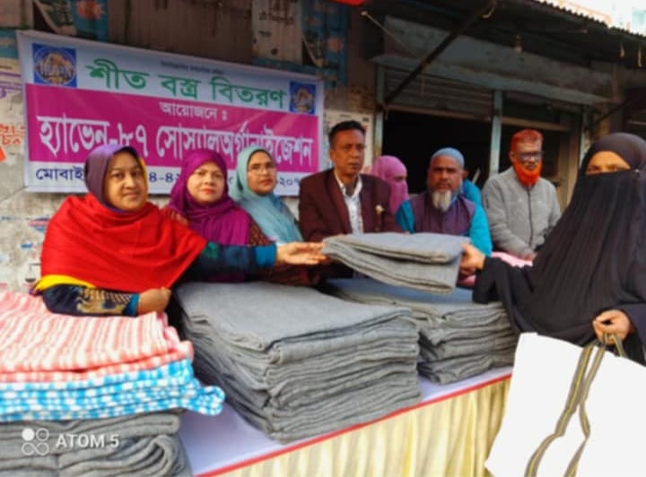 ১১ ডিসেম্বর শহরের বিভিন্ন জায়গায় গরীব দুস্থ অসহায়দের মাঝে ৩০০ জনের মাঝে কম্বল বিতরণ করেন সংস্হাটি।কম্বল বিতরনের আগে সংক্ষিপ্ত আলোচনা সভা হয়।সভায় সভাপতিত্ব করেন সংস্হার সহসভাপতি ফরহাদ হোসেন।অনুষ্ঠানটি পরিচালনা করেন প্রচার সম্পাদক সালমা খাতুন।সভায় প্রধান অতিথি হিসেবে উপস্থিত ছিলেন হ্যাভেন ৮৭ সোসাল অর্গানাইজেশনের প্রতিষ্ঠাতা সদস্য সাংবাদিক আমিনুল ইসলাম।তিনি আরও বলেন আমাদের কার্য পরিধি আপাতত বগুড়া জেলার মধ্যে।আমরা আগাগীতেও আপনাদের পাশে থাকবো ইনশাল্লাহ।