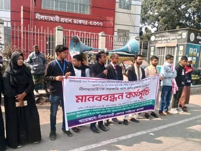 সোমবার ১২ই জানুয়ারি ২০২৬ সকাল ১১ টার সময় নীলফামারী চৌরঙ্গী মোড়ে এ মানববন্ধন অনুষ্ঠিত হয়। মানববন্ধন শেষে শতাধিক সাধারণ জনগণ ও বিভিন্ন সামাজিক সংগঠনের প্রতিনিধিদের স্বাক্ষর সংবলিত গণস্বাক্ষর ও স্মারকলিপি জেলা প্রশাসক বরাবর প্রদান করা হয়।