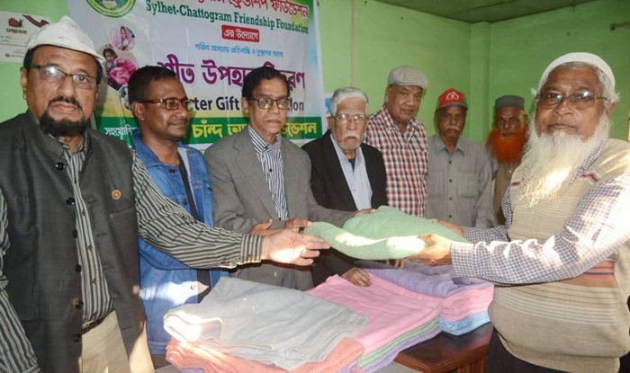 সিলেট-চট্টগ্রাম ফ্রেন্ডশিপ ফাউন্ডেশনের উদ্যোগে ও হাজী চাঁন্দ আলী ফাউন্ডেশনের সহযোগিতায় ১২ জানুয়ারি, সোমবার, বিকাল ৪ টায় নগরীর পশ্চিম খুলশী জালালাবাদ মুক্তিযোদ্ধা কলোনীতে বীর মুক্তিযোদ্ধা পরিবারের মাঝে শীতবস্ত্র বিতরণ করা হয়।