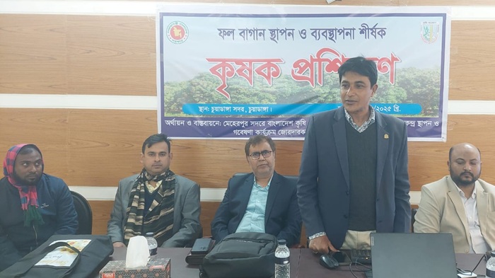 মোঃ আব্দুল্লাহ হক, চুয়াডাঙ্গা জেলা প্রতিনিধি: ফল বাগান স্থাপন ও আধুনিক ব্যবস্থাপনা কলাকৌশল সম্পর্কে কৃষকদের দক্ষ করে তুলতে চুয়াডাঙ্গা সদরে দিনব্যাপী কৃষক প্রশিক্ষণ অনুষ্ঠিত হয়েছে।