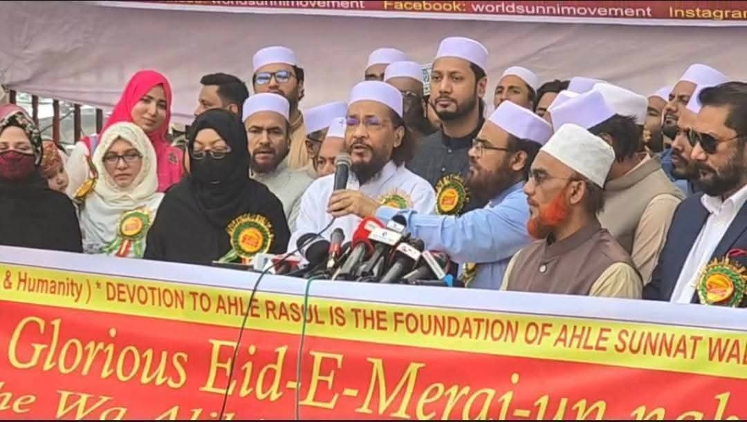 সত্য ও জীবনের উপলব্ধির জন্য অতি অপরিহার্য মৌলিক ঈমানী বিষয় ঈদে মেরাজ শরীফের মহান তাৎপর্য্য তুলে ধরার লক্ষ্যে বিশ্ব সুন্নী আন্দোলনের উদ্যোগে আজ ১৬ জানুয়ারি শুক্রবার সকালে ঢাকা প্রেসক্লাব সম্মুখে সমাবেশ ও সমাবেশ শেষে বর্ণাঢ্য শোভাযাত্রা অনুষ্ঠিত হয়।