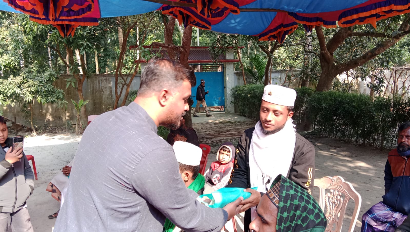 শুক্রবার (১৬ জানুয়ারি ২০২৬) সকাল ৯টা থেকে শুরু হওয়া এ মানবিক অনুষ্ঠানে এলাকার বিভিন্ন মসজিদের ২০ জন ইমাম সাহেবকে সম্মাননা ও উপহার সামগ্রী প্রদান করা হয়। একই সঙ্গে সমাজের অসহায় মানুষের পাশে দাঁড়ানোর অংশ হিসেবে ৪০ জন হতদরিদ্র ও সহায়তা প্রাপ্ত নারীদের মাঝে উপহার বিতরণ করা হয়।