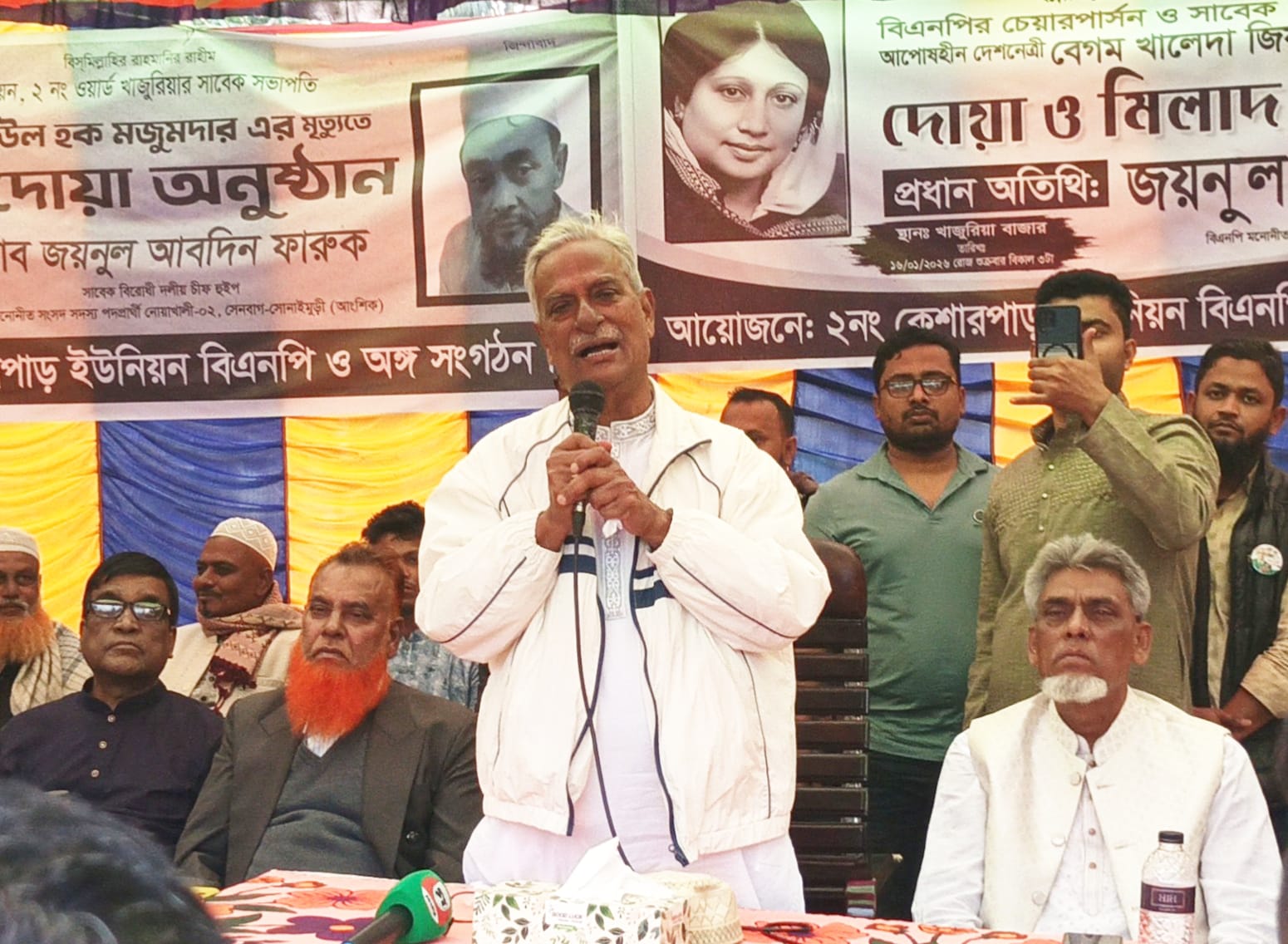শুক্রবার ( ১৬ জানুয়ারি ) বিকেল সাড়ে ৪টায় নোয়াখালীর সেনবাগের খাজুরিয়া বাজারে আয়োজিত এ দোয়া ও মিলাদ মাহফিলে প্রধান অতিথি হিসেবে উপস্থিত ছিলেন, বিএনপির সাবেক বিরোধী দলীয় চীফ হুইপ ও বিএনপি মনোনীত সংসদ সদস্য পদপ্রার্থী নোয়াখালী-০২ (সেনবাগ–সোনাইমুড়ী আংশিক) আসনের জননেতা জয়নুল আবেদিন ফারুক।