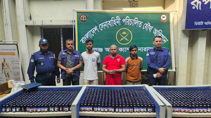 নারায়ণগঞ্জের রূপগঞ্জ উপজেলার ভুলতা ইউনিয়নের লাভরাপাড়া এলাকায় যৌথ বাহিনী অভিযান চালিয়ে বিপুল পরিমাণ মাদকদ্রব্যসহ তিন যুবককে গ্রেফতার করেছে। গতকাল ১৬জানুয়ারি শুক্রবার সকাল সাড়ে দশটা থেকে দুপুর সাড়ে বারোটা পর্যন্ত অভিযান চালিয়ে লাভরাপাড়া এলাকা থেকে তাদের গ্রেফতার করা হয়। এসময় তাদের কাছ থেকে ১৩৫ কেজি গাঁজা, ১০হাজার পিস ইয়াবা, ২৯০ বোতল ফেনসিডিল, ১হাজার ৩৩১ বোতল ফেনসিডিলের ন্যায় ইস্কাব উদ্ধার করা হয়।