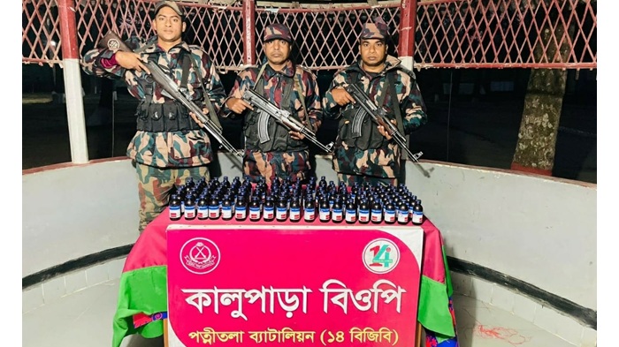 যাহার সিজার মূল্য-২৯,২০,০০০/- টাকা। একই দিনে ভোর ০৪৩০ ঘটিকায় কালুপাড়া বিওপি’র টহল কমান্ডার হাবিলদার মোঃ বাদশা আলমগীর এর নেতৃত্বে একটি বিশেষ টহল দলের মাধ্যমে সীমান্ত পিলার ২৭২ এমপি হতে আনুমানিক ৬০০ গজ বাংলাদেশের অভ্যন্তরে উস্তমবাদ এলাকায় পাঁকা রাস্তার উপর অভিযান পরিচালনা করে মালিকবিহীন অবস্থায় ১২৬ বোতল নেশাজাতীয় কাশির সিরাপ উদ্ধার করতে সক্ষম হয়।