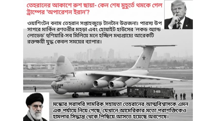শেষ প্রর্যন্ত মধ্যপ্রাচ্যের এই দাবা খেলায় রাশিয়ার ‘গোপন কার্গো বিমান’ একটি শক্তিশালী ‘চাল’ হিসেবে প্রমাণিত হয়েছে। ওয়াশিংটন বুঝতে পেরেছে যে, ২০২৬ সালের ইরান আগের মতো একা নয়। মস্কোর সরাসরি সামরিক সহায়তা তেহরানের আত্মবিশ্বাসকে এমন এক পর্যায়ে নিয়ে গেছে, যেখানে আমেরিকার মতো পরাশক্তিকেও হামলার সিদ্ধান্ত থেকে পিছিয়ে আসতে হয়েছে অবশেষে।